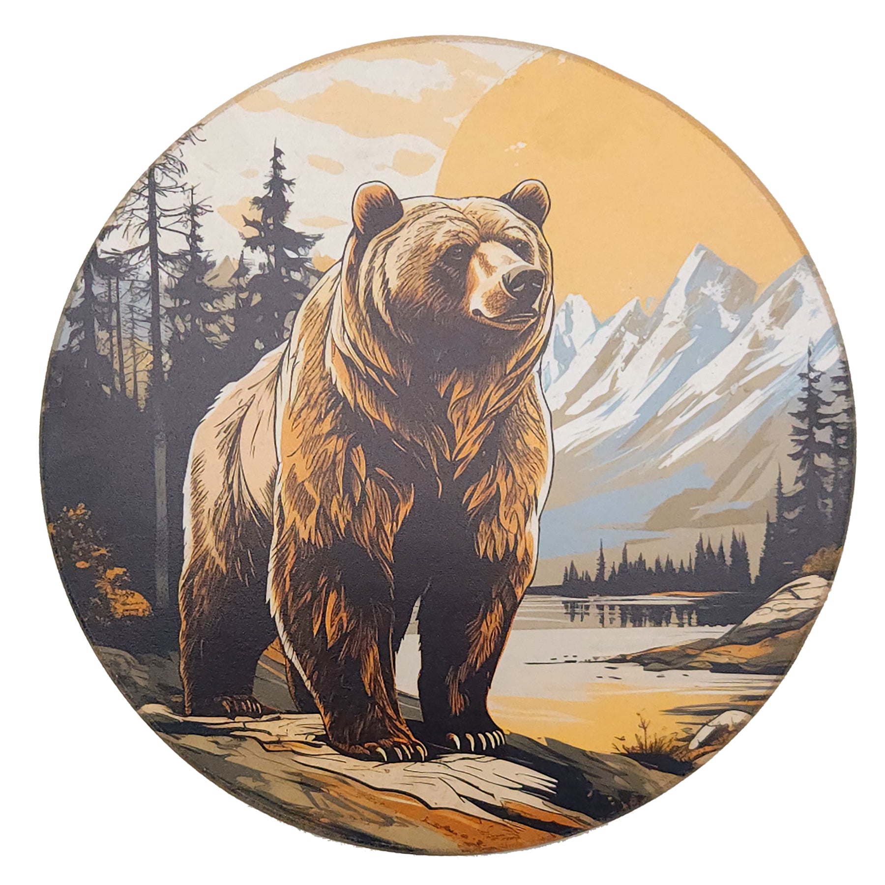 Add a touch of woodland whimsy with this 12-inch wooden round wall hanger featuring a charming bear design. Its smooth, natural wood finish brings playful character to any room, making it a delightful accent that sparks joy and invites a bit of nature indoors.